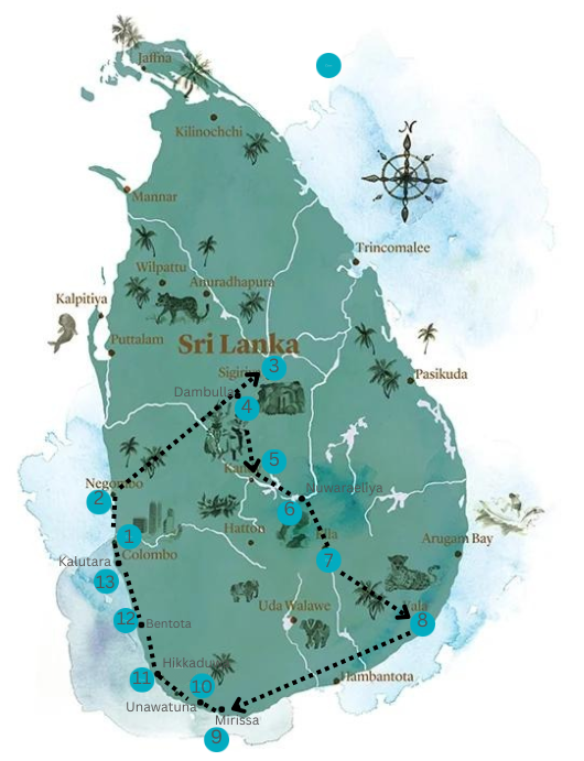 07 Days Sri Lanka Tour TOUR ITINERARIES Negombo Sigiriya / Dambulla Kandy Nuwara Eliya Ella / Yala Mirissa / Unawatuna / Hikkaduwa Bentota, Kalutara Place Your Booking Now Book Now